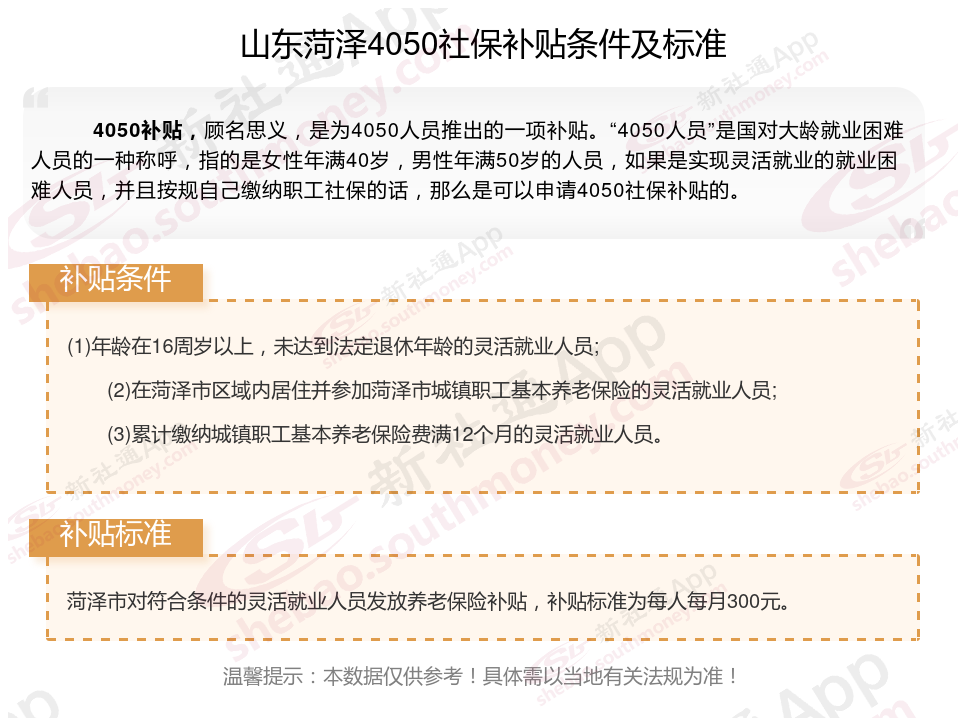 一、山东菏泽4050社保补贴标准及条件是多少?