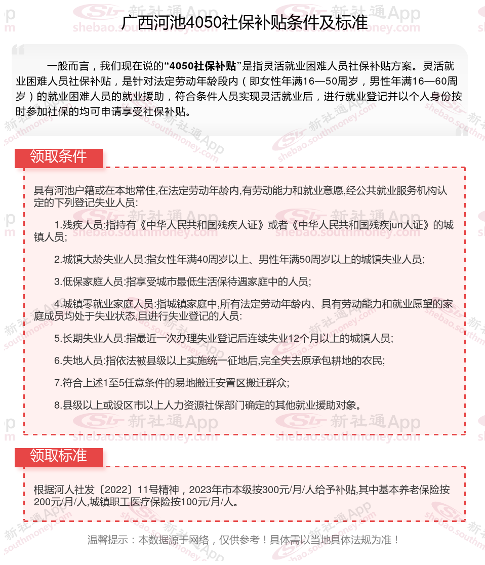 二、广西河池4050社保补贴标准及条件2025年最新消息