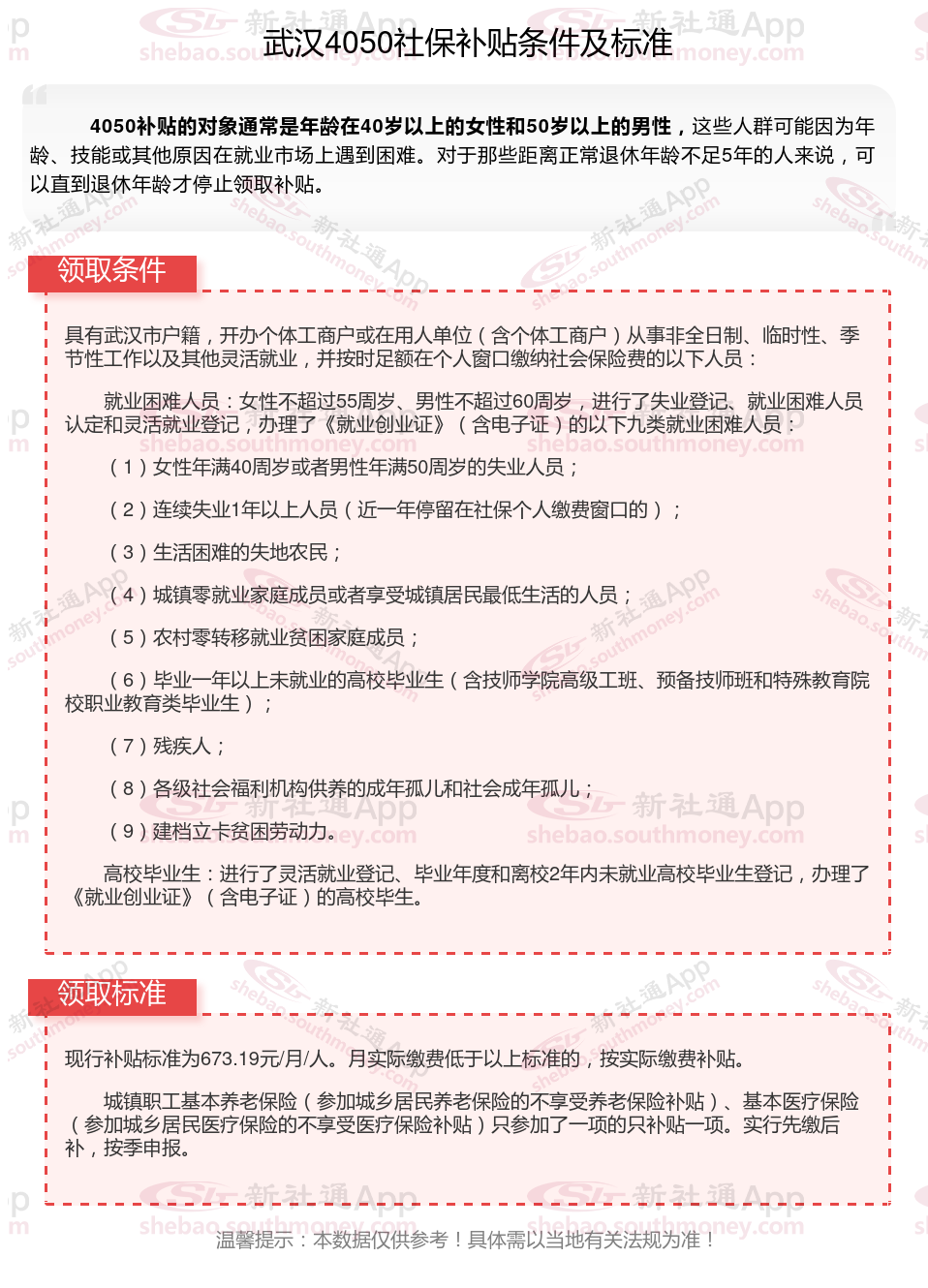 2025武汉4050补贴主要针对的是年龄在40岁以上的女性和50岁以上的男性,这些人群通常因为年龄较大而面临就业困难。