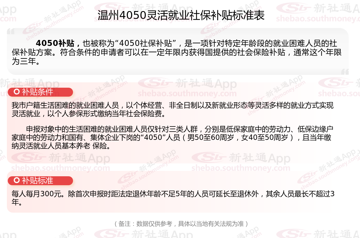 2025温州4050补贴主要针对的是年龄在40岁以上的女性和50岁以上的男性,这些人群通常因为年龄较大而面临就业困难。