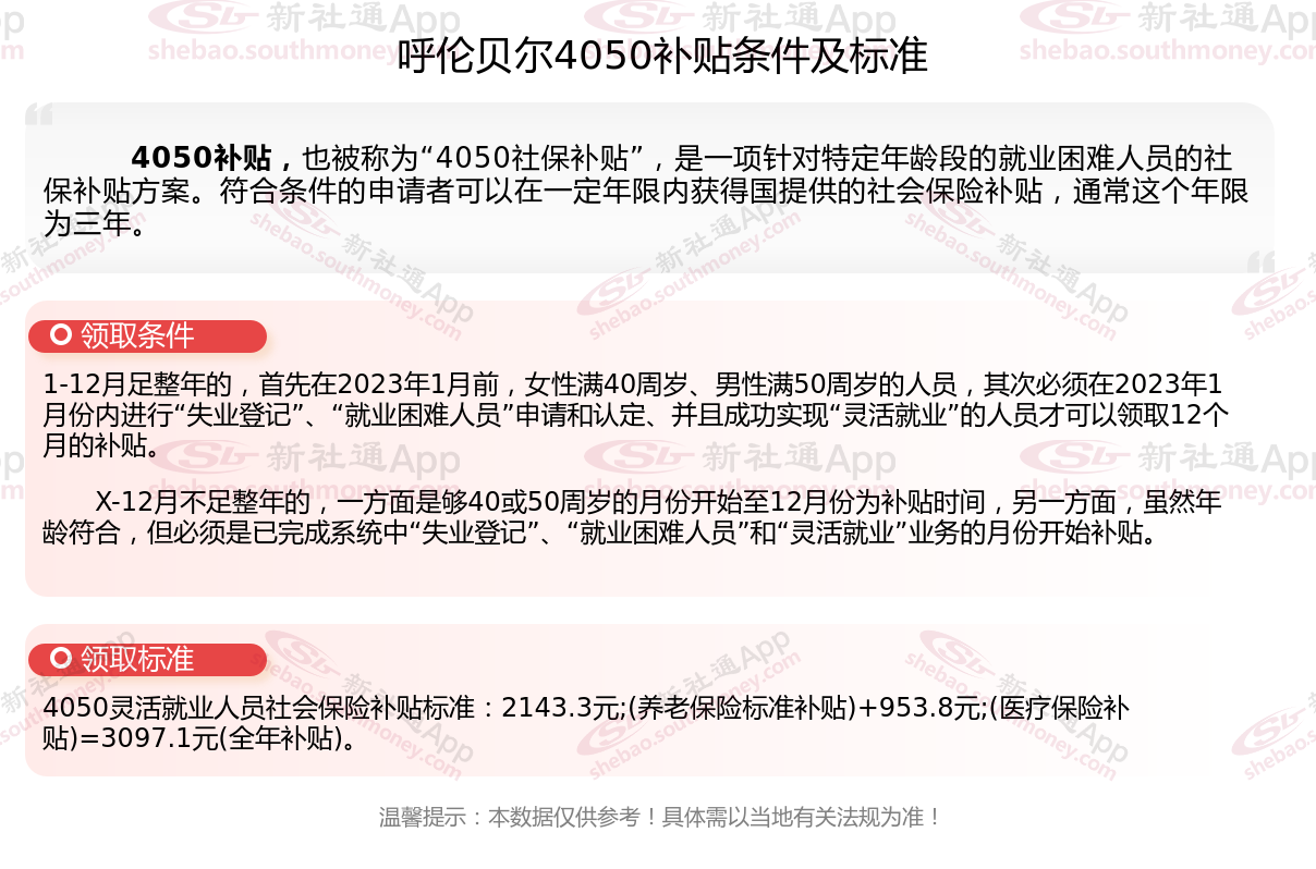 一、2023-2024年呼伦贝尔4050社保补贴标准及条件,最新如下