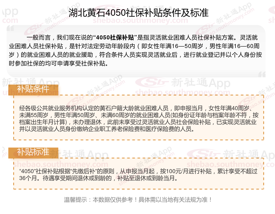 三、湖北黄石灵活就业4050社保补贴标准及条件是什么