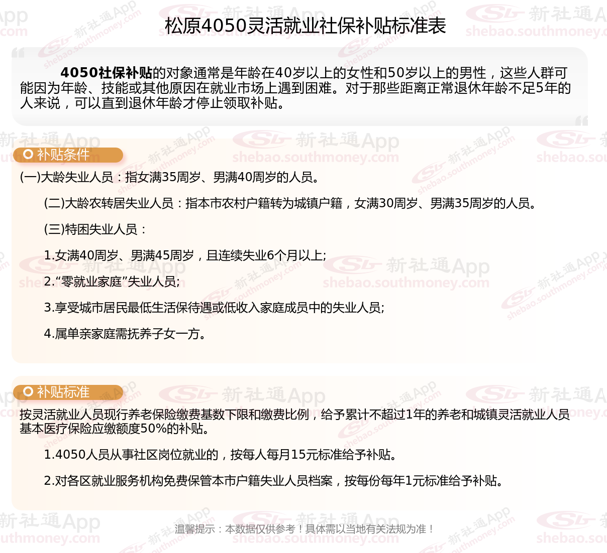 2025松原灵活就业4050社保补贴是一项面向特定年龄段的就业困难人群的社会保险补贴。