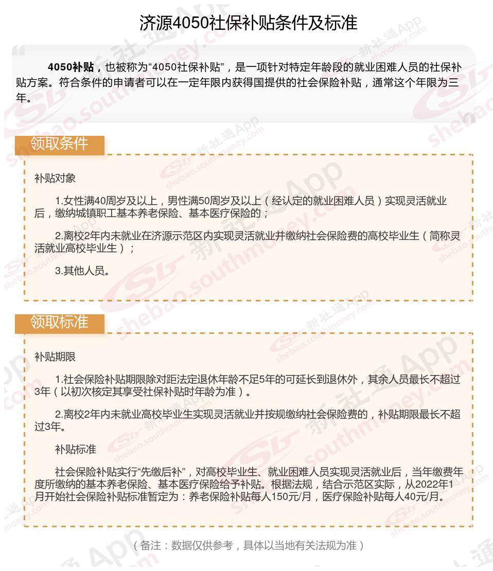 2025济源4050补贴主要针对的是年龄在40岁以上的女性和50岁以上的男性,这些人群通常因为年龄较大而面临就业困难。