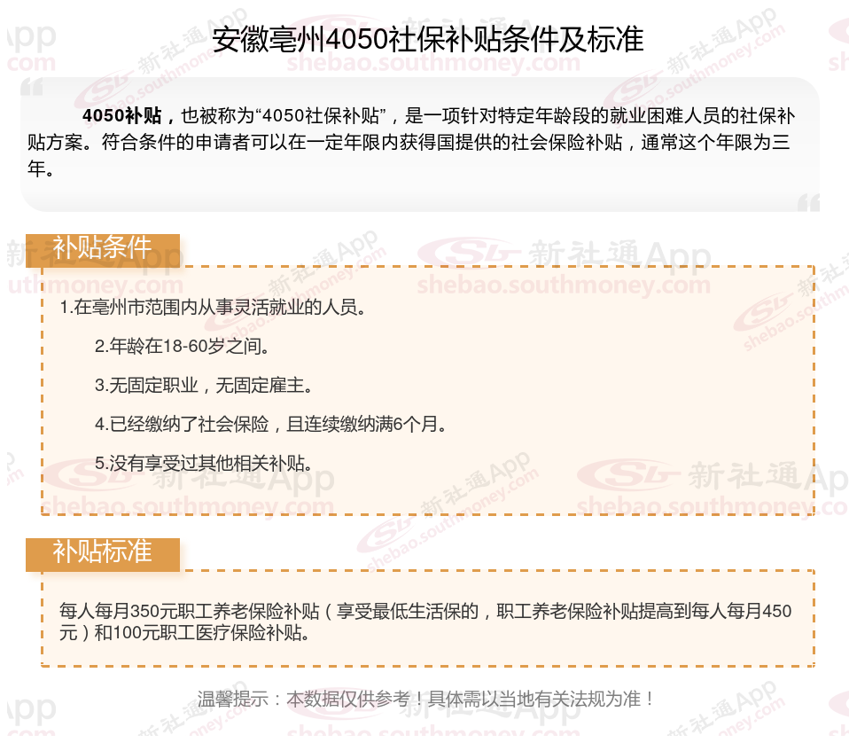 2025安徽亳州灵活就业4050社保补贴是一项面向特定年龄段的就业困难人群的社会保险补贴。
