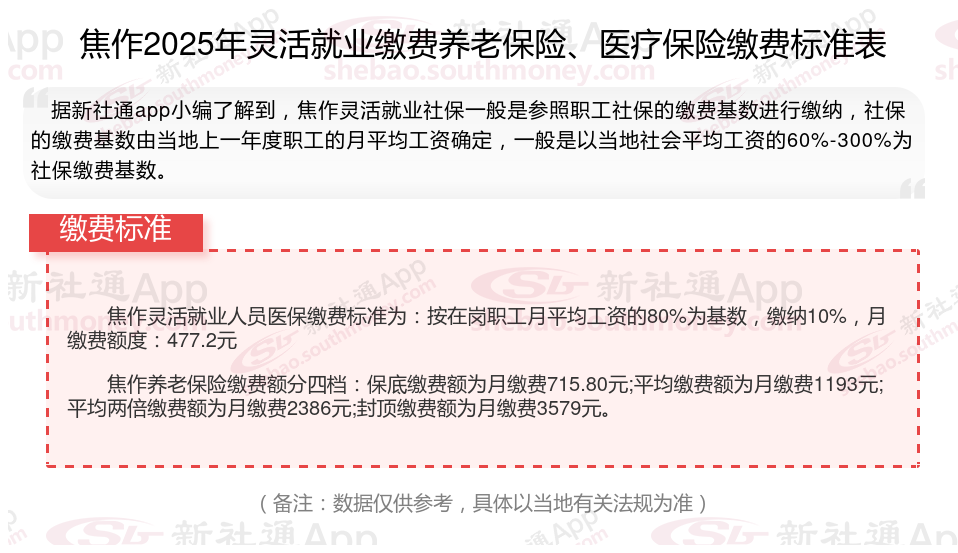 据新社通app数据显示,2024-2025年焦作灵活就业人员养老保险的缴费标准: