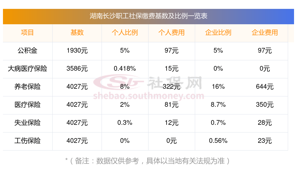 2025年湖南长沙社保缴费多少钱?下表是2024-2025年湖南长沙社保费用明细参考,新社通app-社保缴费查询工具提供的最新数据如下: