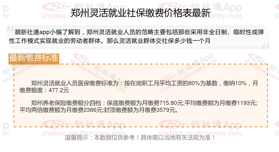 据新社通app数据显示,郑州灵活就业养老保险缴费基数2024-2025年最新标准如下:
