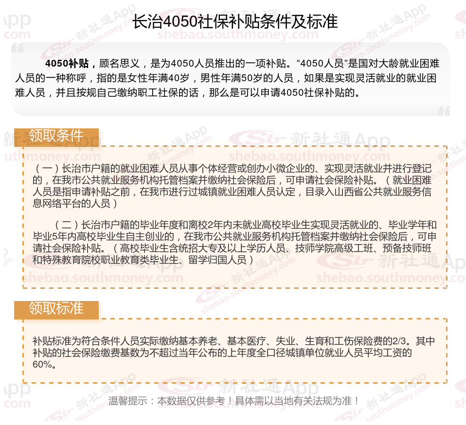 2025长治4050补贴主要针对的是年龄在40岁以上的女性和50岁以上的男性,这些人群通常因为年龄较大而面临就业困难。