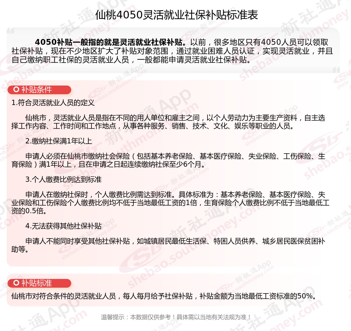 仙桃4050灵活就业社保补贴标准如何?“4050补贴”需要以灵活就业身份参加职工养老和医疗保险,补贴标准不超过实际缴费的三分之二,最长3年,距离退休不足5年的可延长到退休。补贴对象包括国企下岗人员、低保家庭等。申请流程需要提交身份证、银行账户等。那么仙桃4050灵活就业社保补贴标准是多少钱?仙桃4050社保补贴条件是什么?接下来随新社通APP小编了解一下仙桃4050灵活就业社保补贴标准最新资讯。