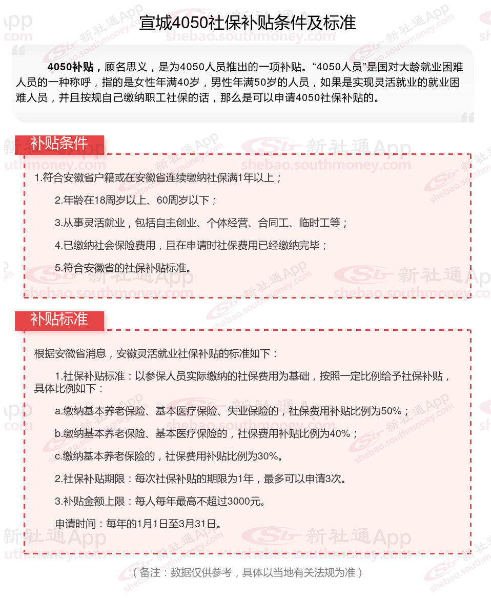 一、宣城4050社保补贴标准及条件2025年最新消息