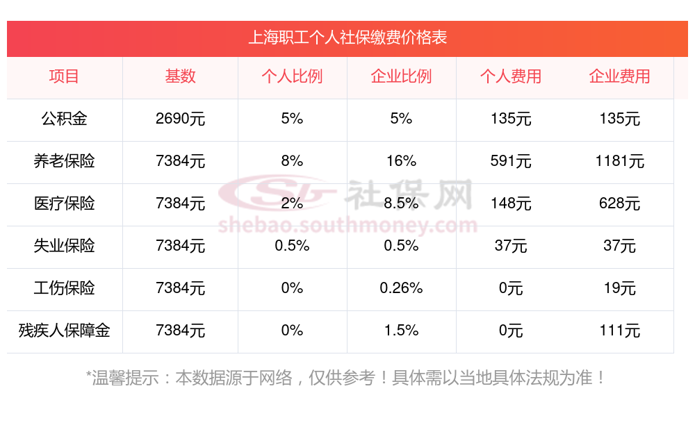 2025年上海社保缴费价格,2025年上海社保缴费多少钱?下表是2025年上海社保费用明细参考,新社通app-社保缴费查询工具提供的最新数据如下: