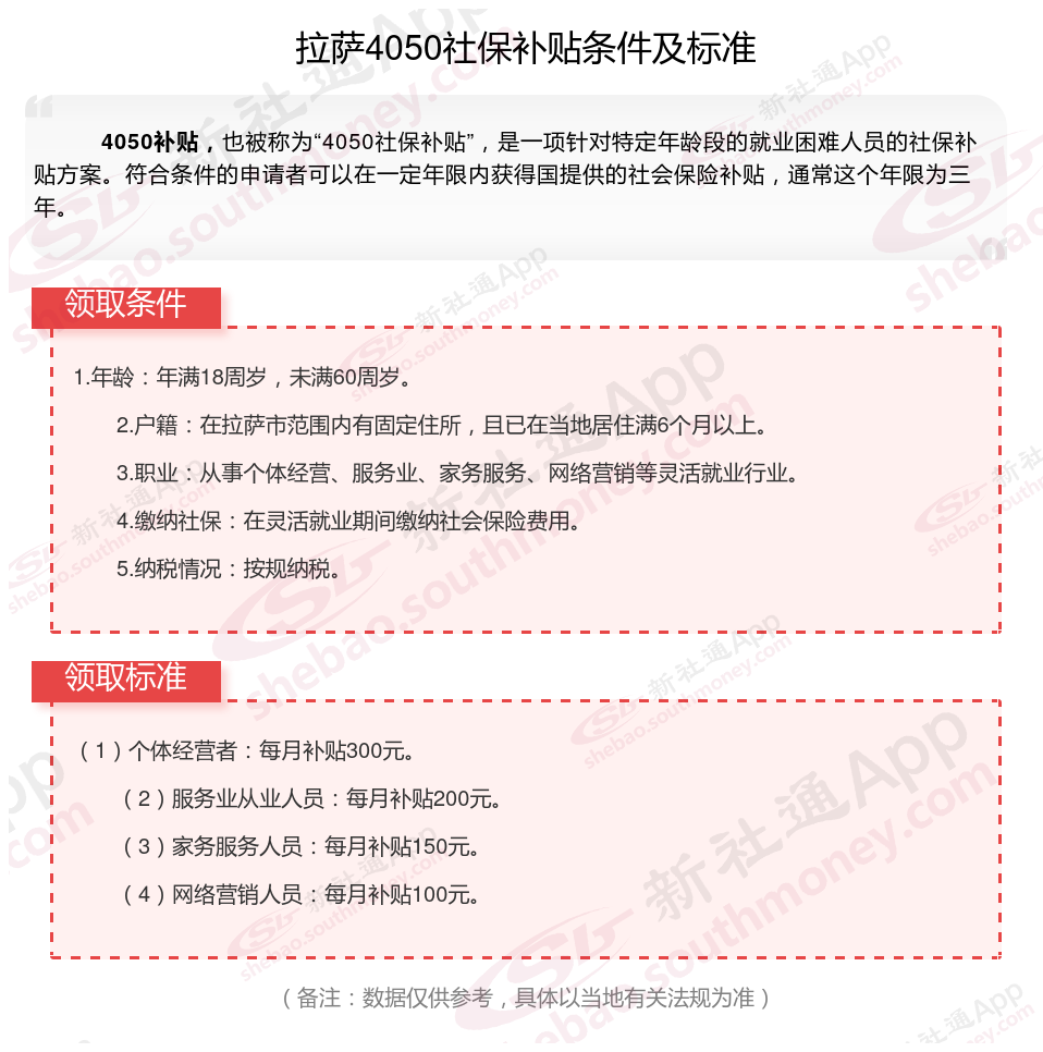 一、拉萨4050社保补贴标准及条件2025年最新消息