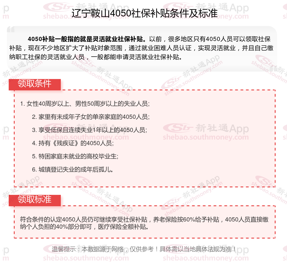 二、2025年辽宁鞍山4050社保补贴标准(辽宁鞍山4050灵活就业人员补贴标准是多少钱?辽宁鞍山2025年4050补贴新规能领多少钱?)