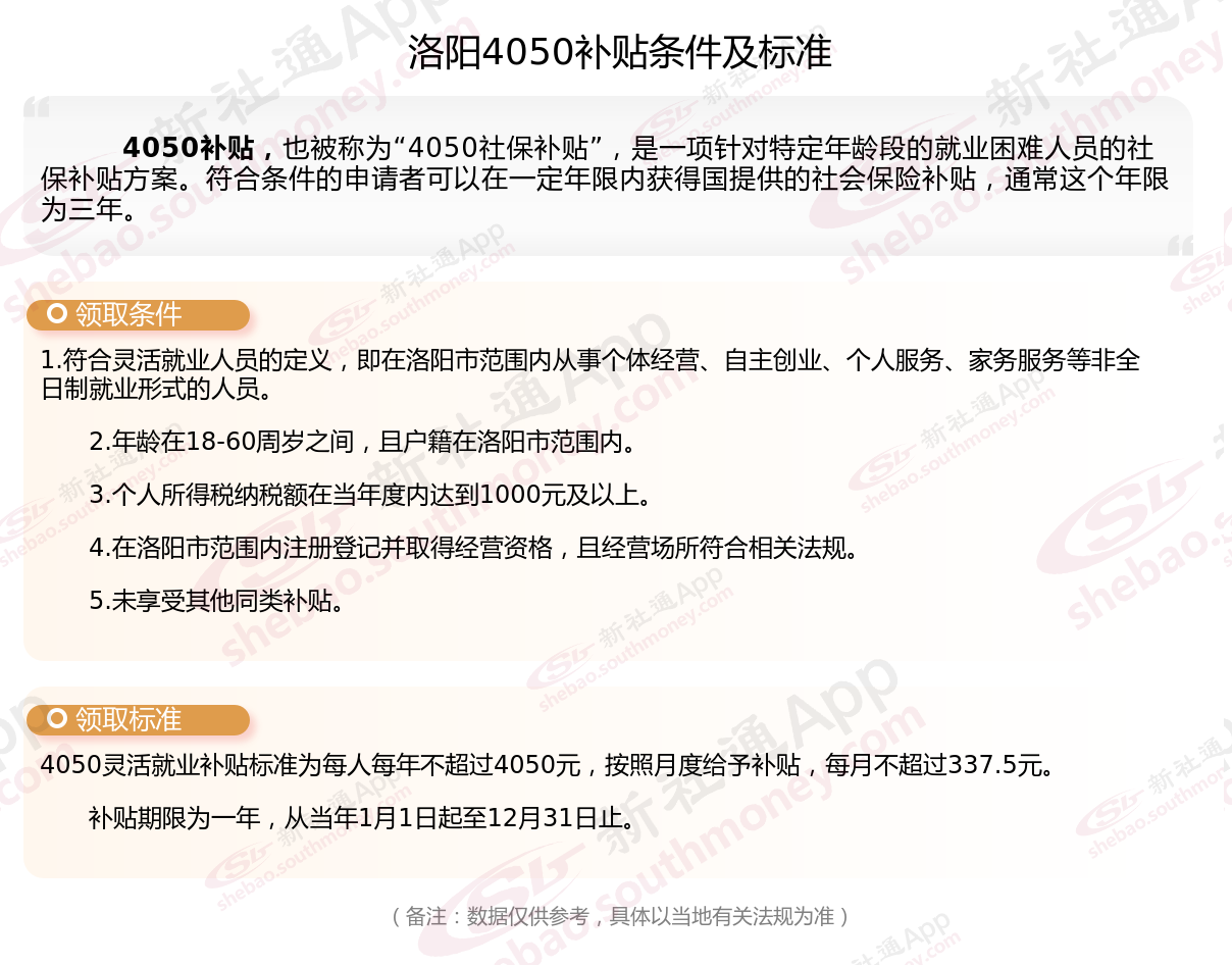 一、2023-2024年洛阳4050社保补贴标准及条件,最新如下