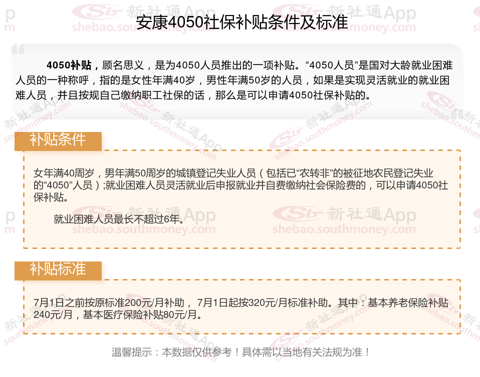 一、安康4050社保补贴标准及条件是多少?