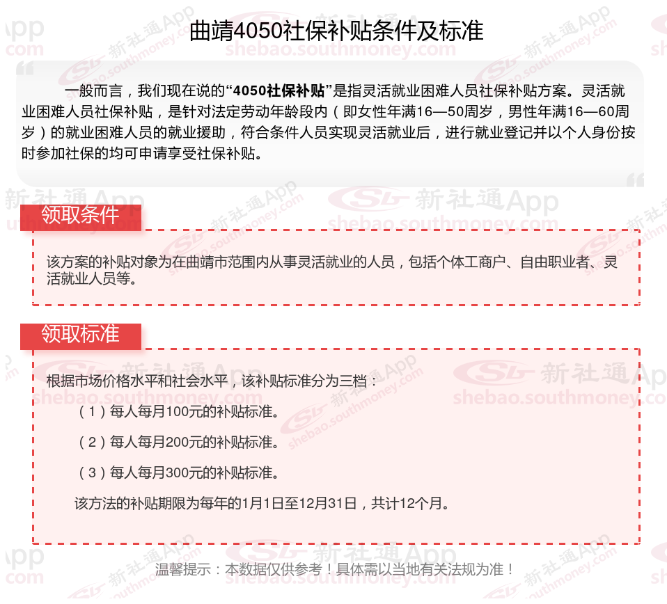 一、2025年曲靖灵活就业4050社保补贴标准和条件是什么