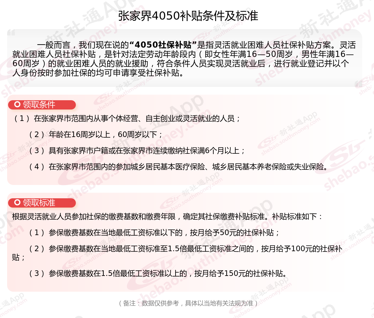 二、2025年张家界4050社保补贴标准是多少,最新4050社保补贴领取条件来了