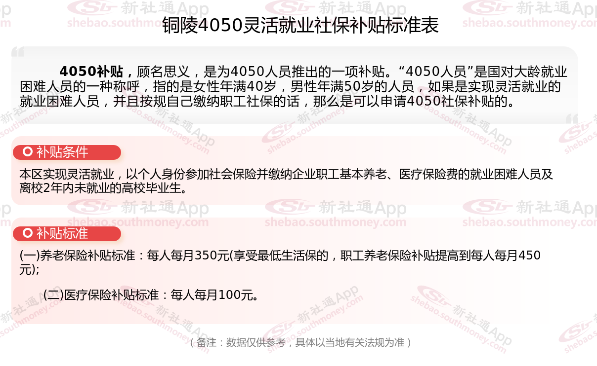 二、铜陵4050社保补贴标准及条件2025年,最新如下