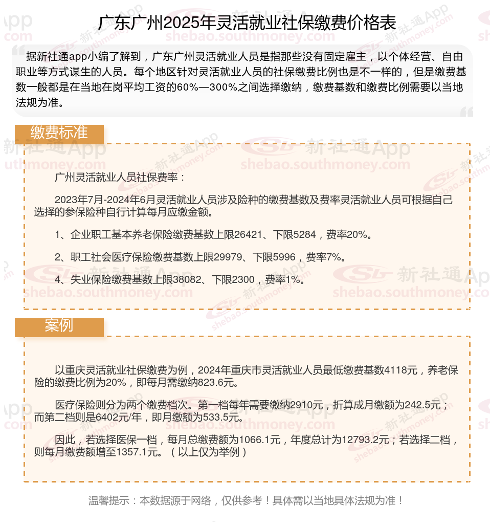 三、广东广州2025年灵活就业社保缴费基数及比例最新消息