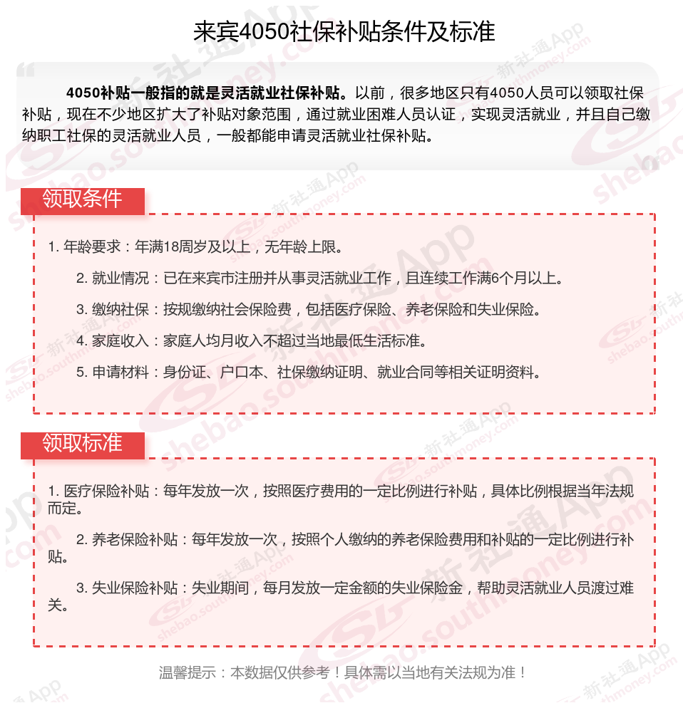 二、来宾4050社保补贴新规2025年最新标准,2025年来宾4050社保补贴条件是什么?