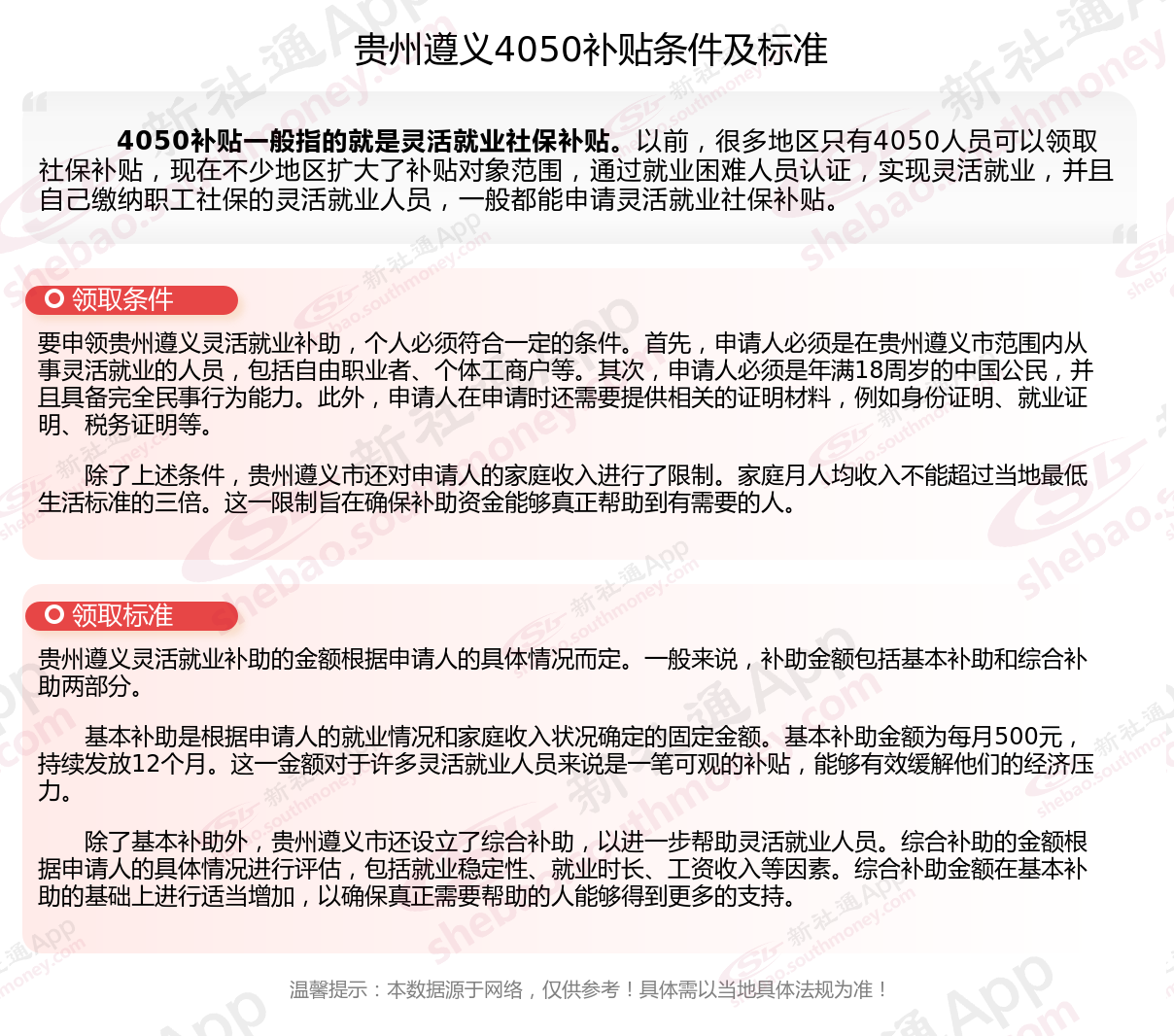 2025贵州遵义灵活就业4050社保补贴是一项面向特定年龄段的就业困难人群的社会保险补贴。