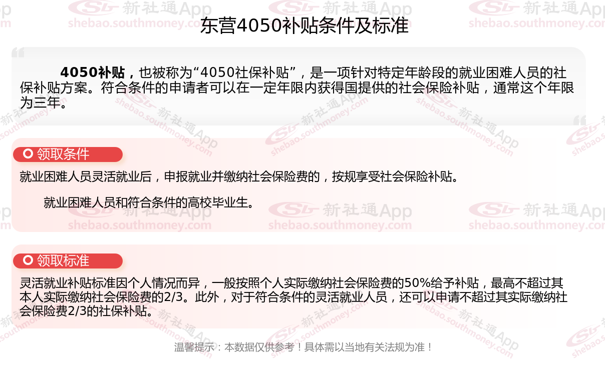 二、2025年东营灵活就业4050社保补贴标准及条件是什么?来了解一下