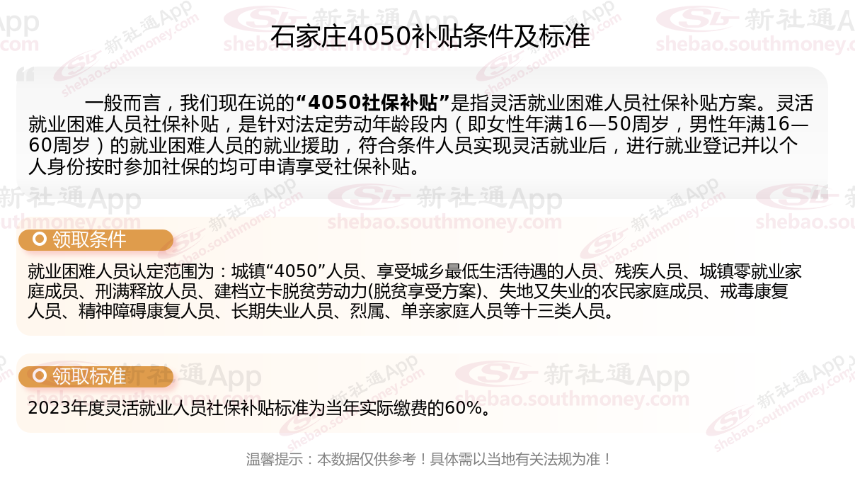 2025石家庄灵活就业4050社保补贴是一项面向特定年龄段的就业困难人群的社会保险补贴。