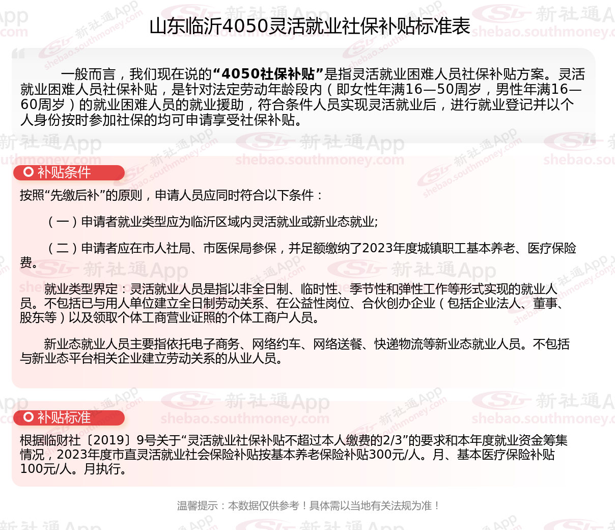 一、2025年山东临沂灵活就业4050社保补贴标准及条件是什么