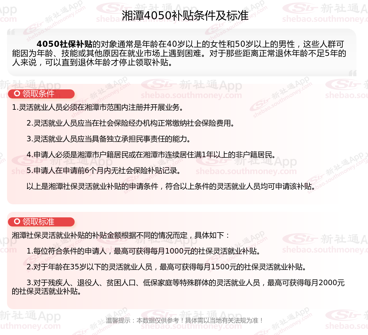 一、2023-2024年湘潭4050社保补贴标准及条件是多少?