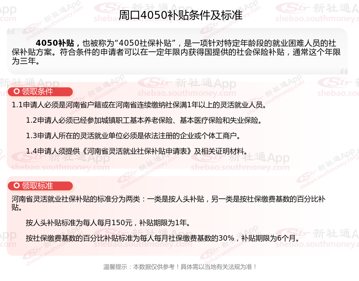 二、2025年周口4050社保补贴标准及条件(4050社保补贴多少钱?)