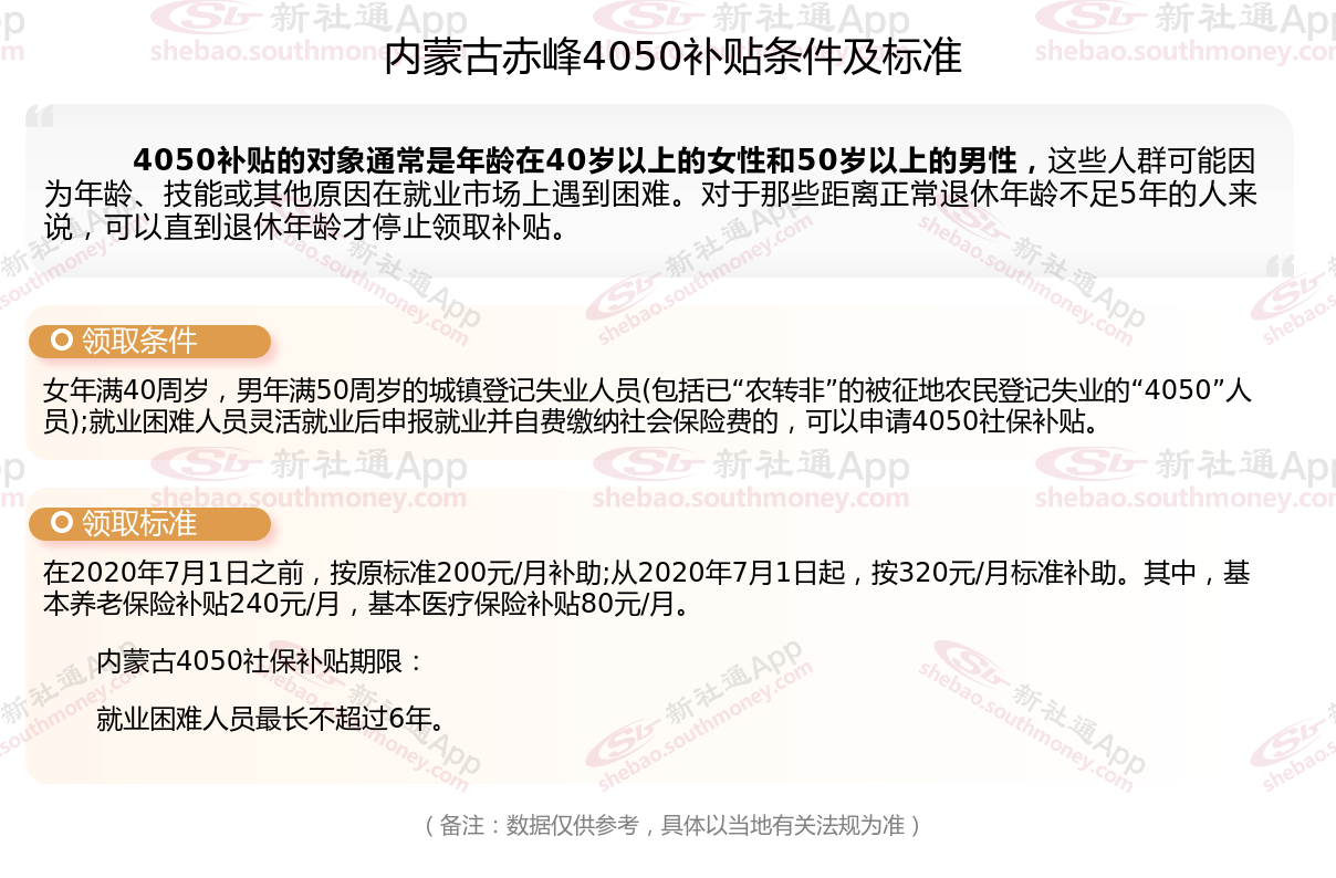二、2025年内蒙古赤峰4050社保补贴标准及条件,最新如下: