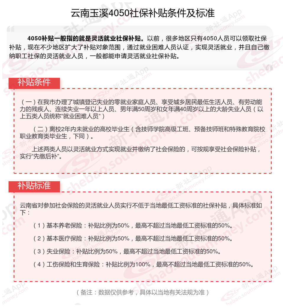 二、云南玉溪4050社保补贴标准及条件4050社保补贴,最新如下
