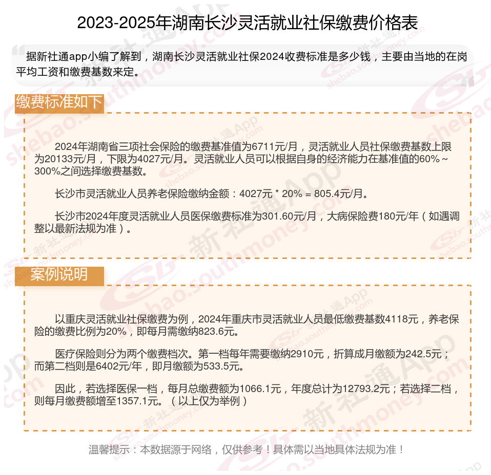 一、2025年湖南长沙灵活就业社保缴费标准公布啦 湖南长沙灵活就业社保多少钱一个月?