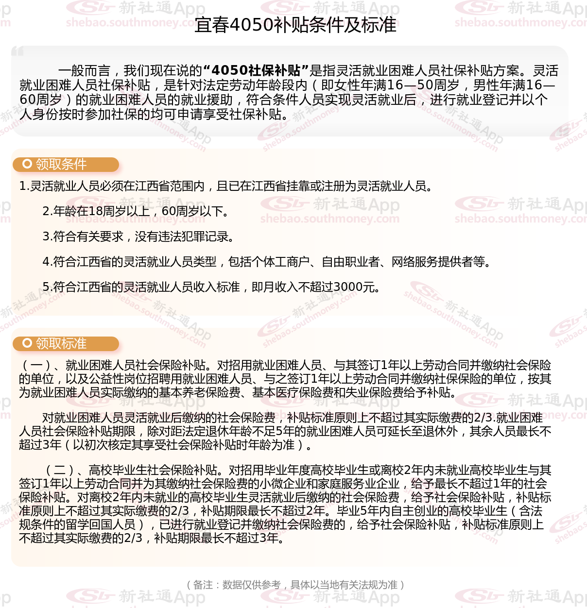 二、宜春4050社保补贴标准及条件2025年最新消息