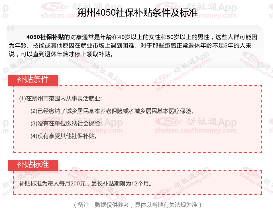 二、2025年朔州4050社保补贴标准及条件,最新如下: