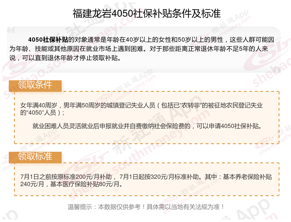 二、2025年福建龙岩4050社保补贴标准(福建龙岩4050灵活就业人员补贴标准是多少钱?福建龙岩2025年4050补贴新规能领多少钱?)