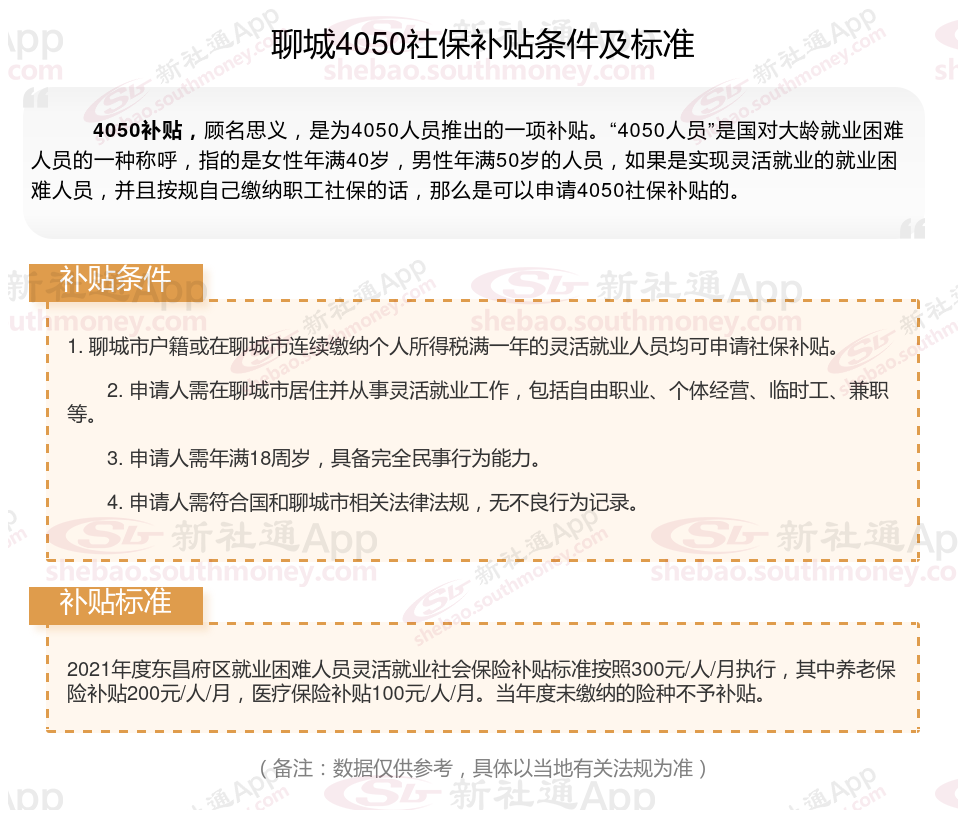 二、聊城灵活就业4050社保补贴标准及条件是什么