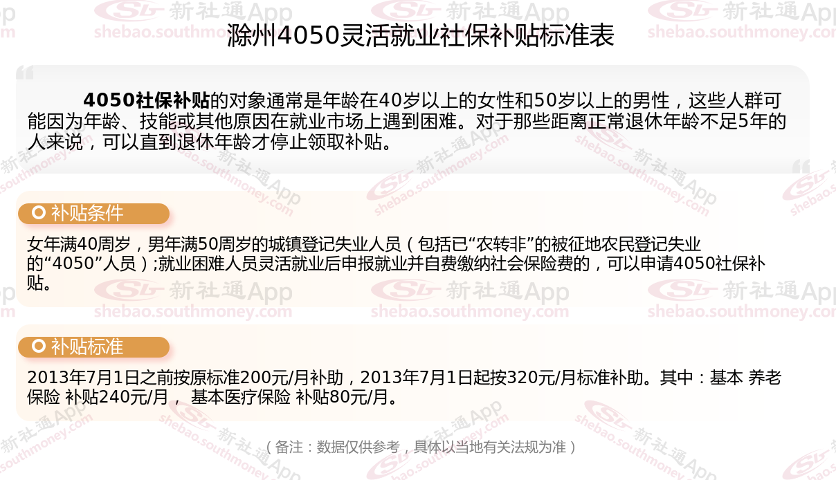 一、2023-2024年滁州4050社保补贴标准及条件,最新如下
