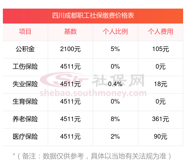 四川成都社保缴纳情况是怎样的?一起和社保小编一起来看看下面的明细表: