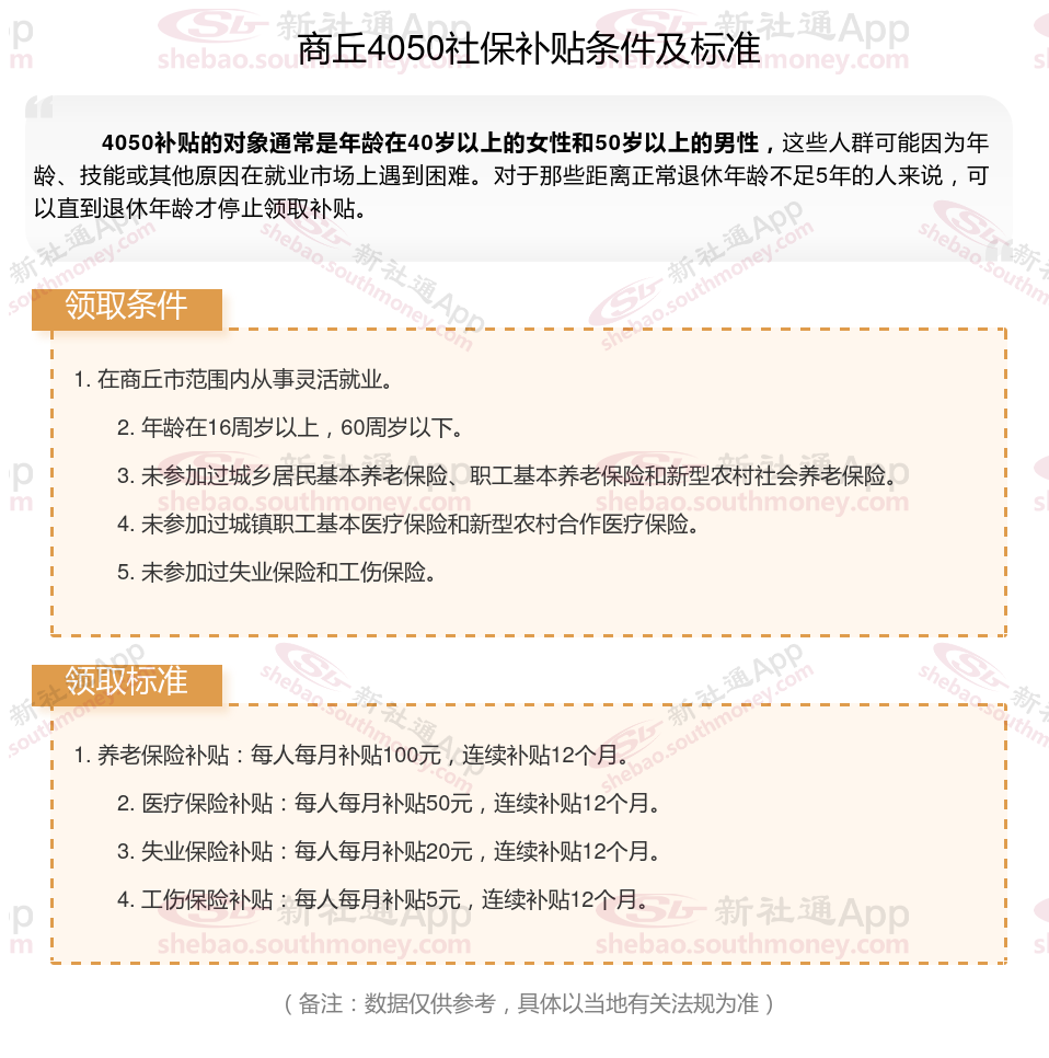 2025商丘4050补贴主要针对的是年龄在40岁以上的女性和50岁以上的男性,这些人群通常因为年龄较大而面临就业困难。