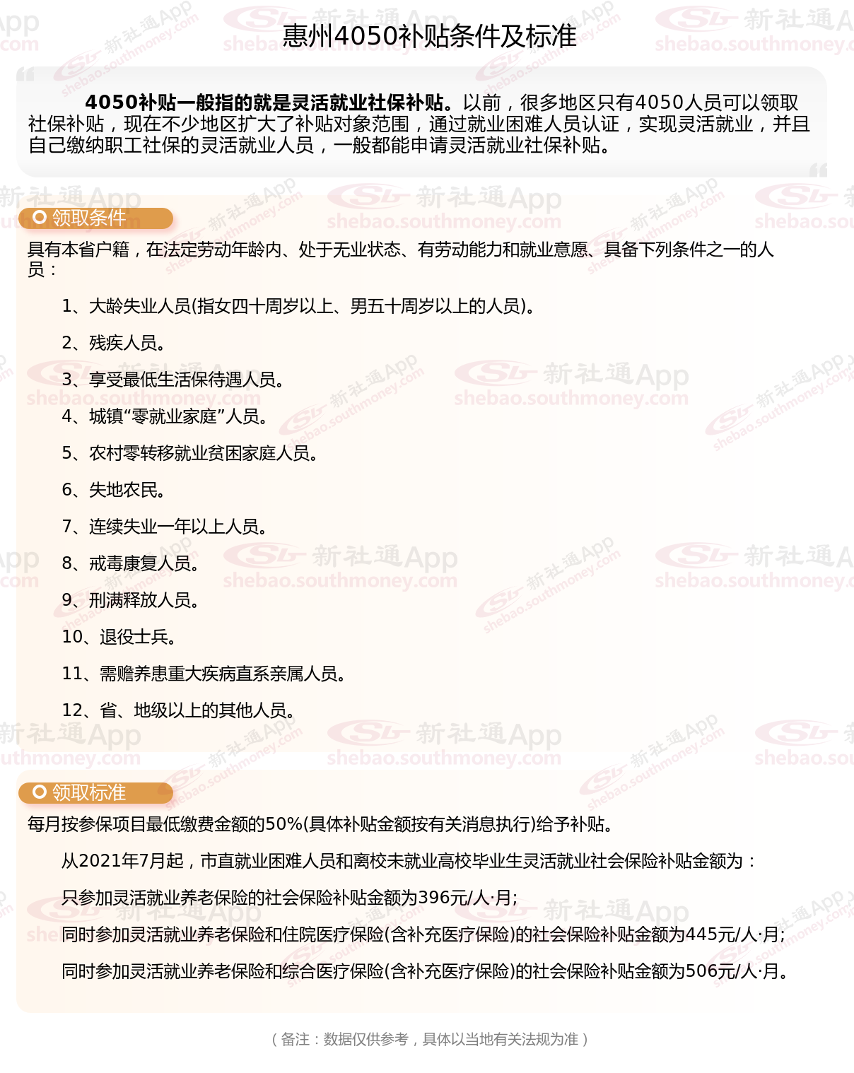 二、2025年惠州4050社保补贴标准是多少?领取条件是什么?