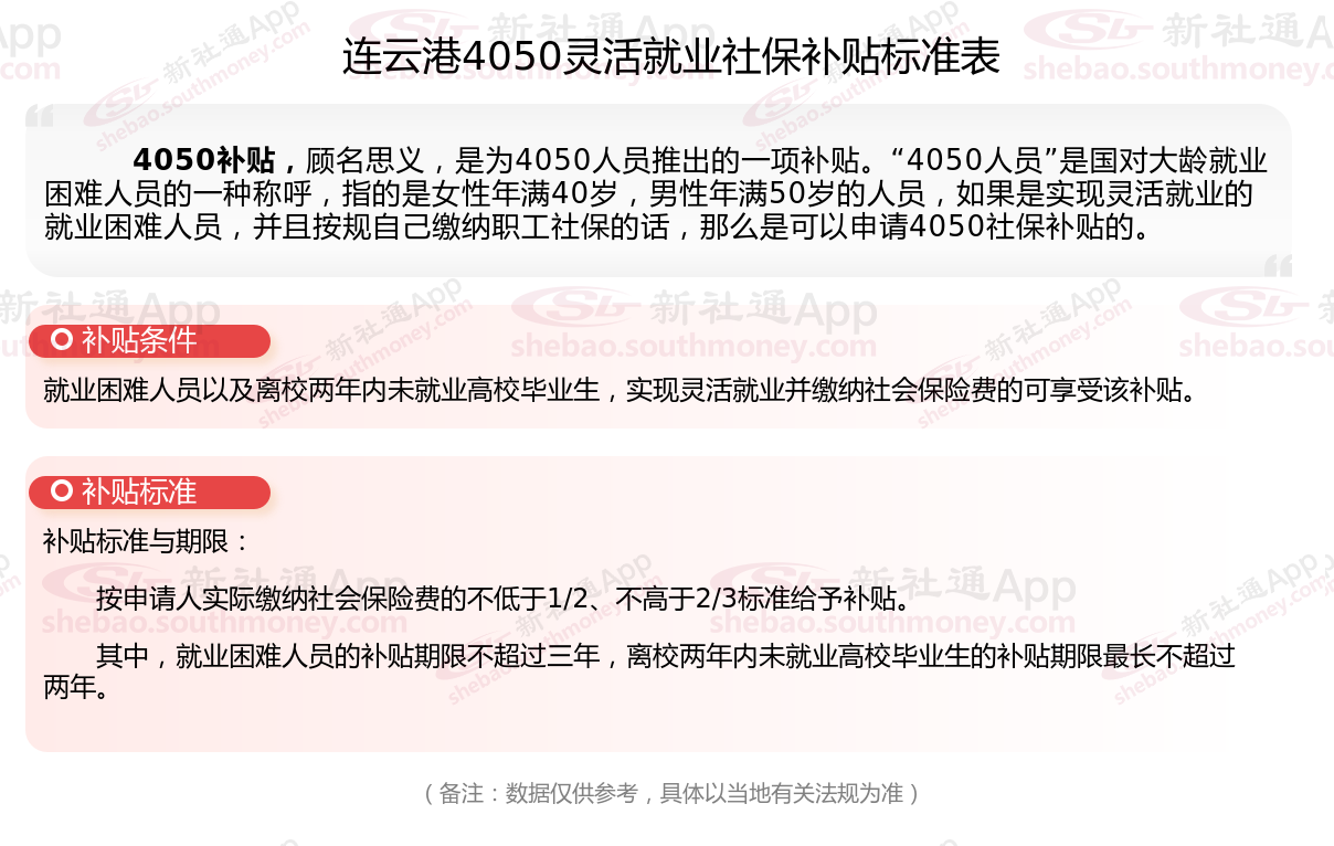 一、连云港4050社保补贴标准及条件2025年最新消息