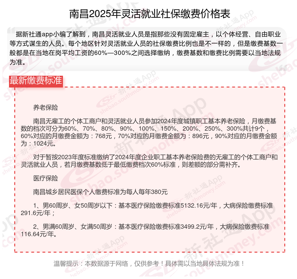 南昌灵活就业人员基本养老保险缴费基数暂按不低于3839元;