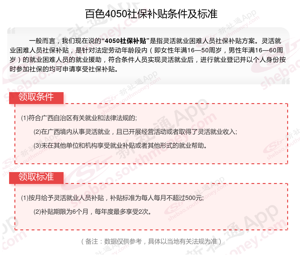 2025百色灵活就业4050社保补贴是一项面向特定年龄段的就业困难人群的社会保险补贴。