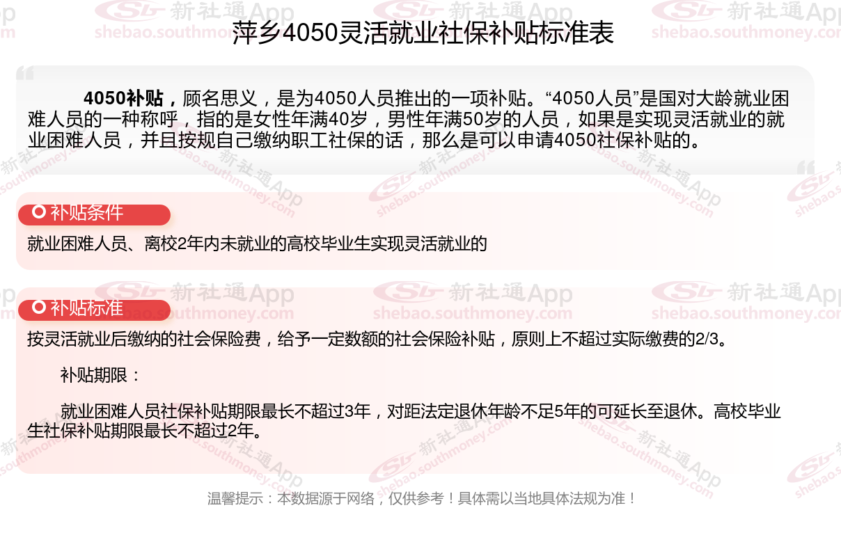 2025萍乡灵活就业4050社保补贴是一项面向特定年龄段的就业困难人群的社会保险补贴。