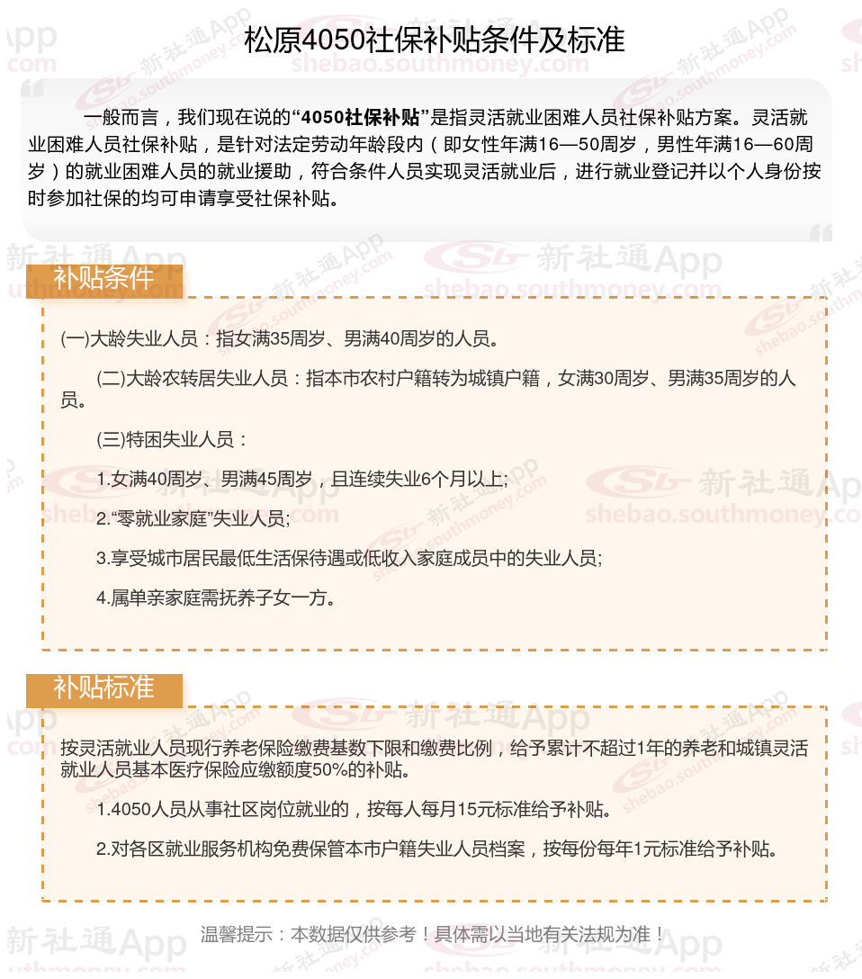 2025松原灵活就业4050社保补贴是一项面向特定年龄段的就业困难人群的社会保险补贴。