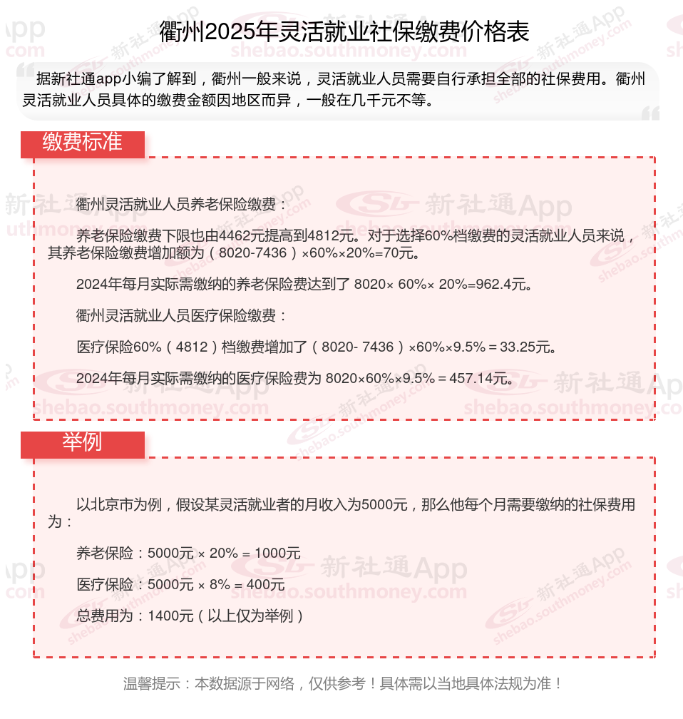 那么,衢州灵活就业人员社保缴费标准2024-2025最新来了,交社保有什么好处?根据新社通app-社保缴费查询工具提供的2025社保缴费标准详情数据: