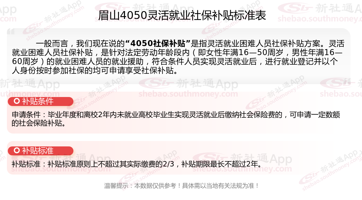 一、2025年眉山4050社保补贴标准是怎么样的?眉山4050一年可拿多少钱?