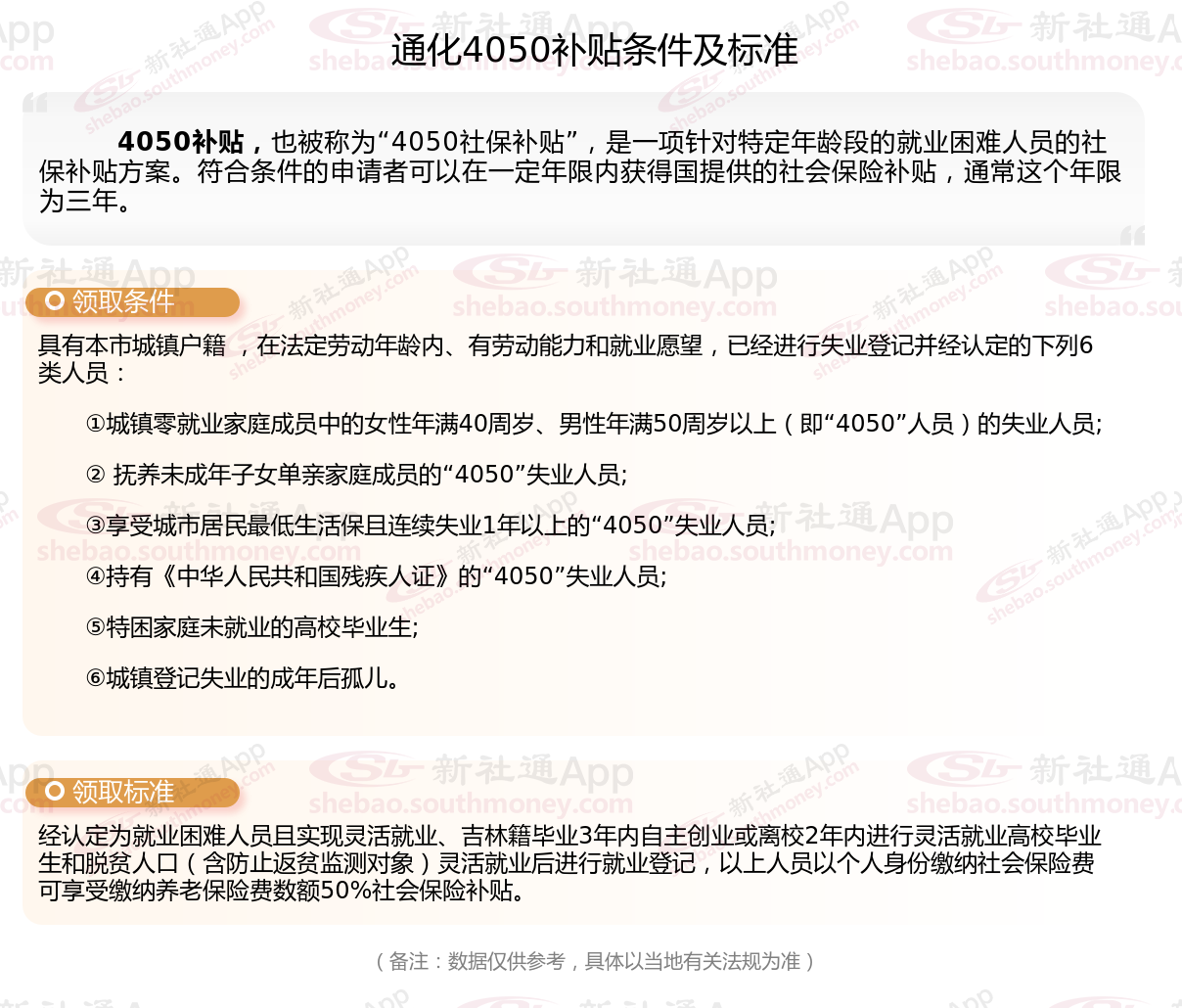 2025通化4050补贴主要针对的是年龄在40岁以上的女性和50岁以上的男性,这些人群通常因为年龄较大而面临就业困难。